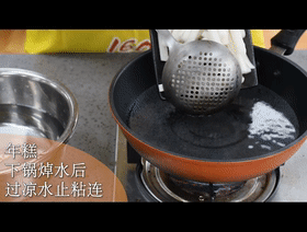 年糕下锅焯水后过凉水,,,,,,,,避免粘连。。。。。