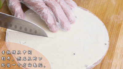 ÊÖ×¥±ý´ÓÖÐÐÄÓõ¶»®¿ª£¬£¬£¬£¬£¬£¬£¬È»ºó´Ó¶Ï¿Ú´¦ÍùÒ»¸öÆ«Ïò¾íÆðÀ´£¬£¬£¬£¬£¬£¬£¬¾í³ÉÒ»¸öÏñÑ©¸âͲµÄÐÎ×´È»ºóÊúÆðÀ´¼ýÍ·³¯ÉÏ£¬£¬£¬£¬£¬£¬£¬ÓÃÊÖÍùÏÂѹѹ³ÉÒ»¸öÔ²Ô²µÄ±ý