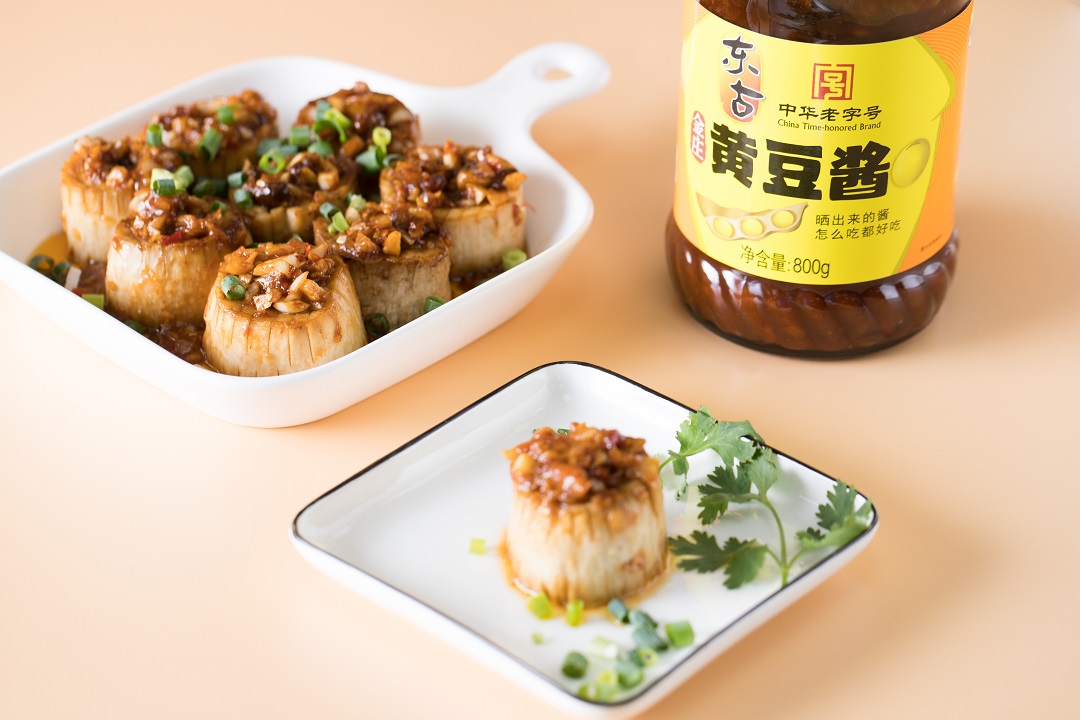 加入一勺蒜蓉辣椒酱、一勺金庄黄豆酱、