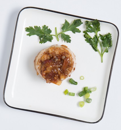 用拉蒜器把大蒜拉碎、切好葱花备用