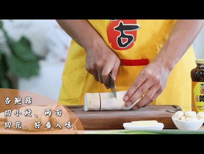 杏鲍菇切3-4cm小段、两面改刀切花、