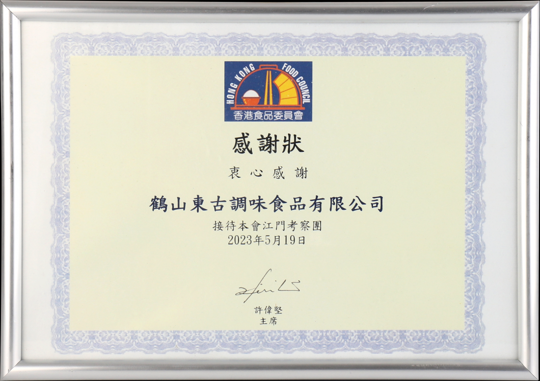 2023年5月香港食委会谢谢状