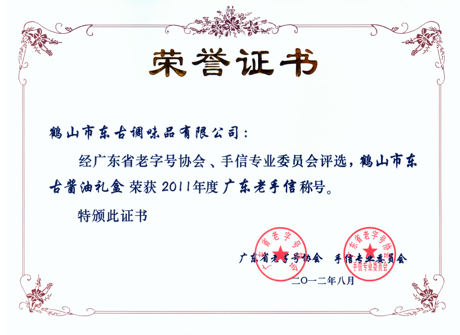 2012J6国际一品鲜获2012最脱销单品奖项证书