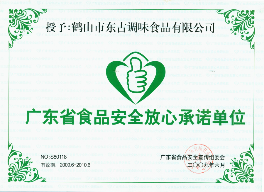2009广东省食物清静定心允许单位(09年)